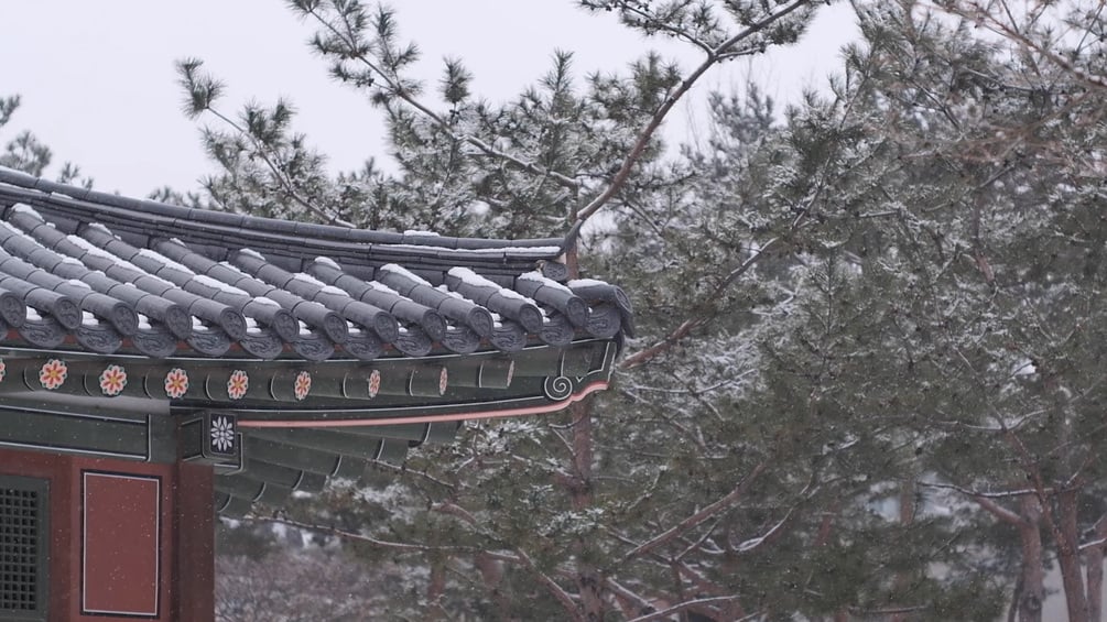 Deoksugung Palace, situated in Jung-gu, Seoul, served as the residence of Gojong during the Joseon Dynasty. The video was captured on January 9, 2024, on a snowy day.